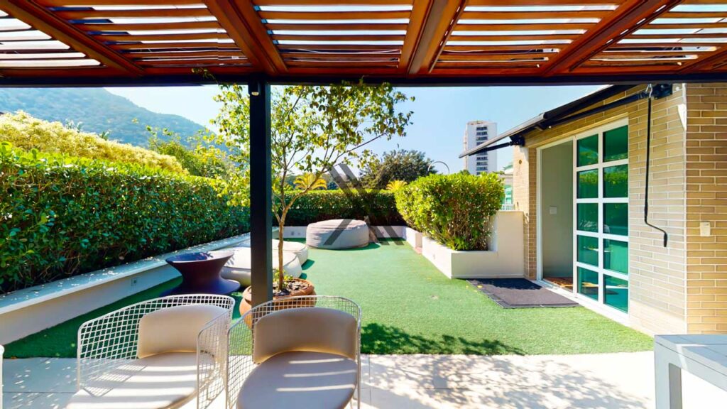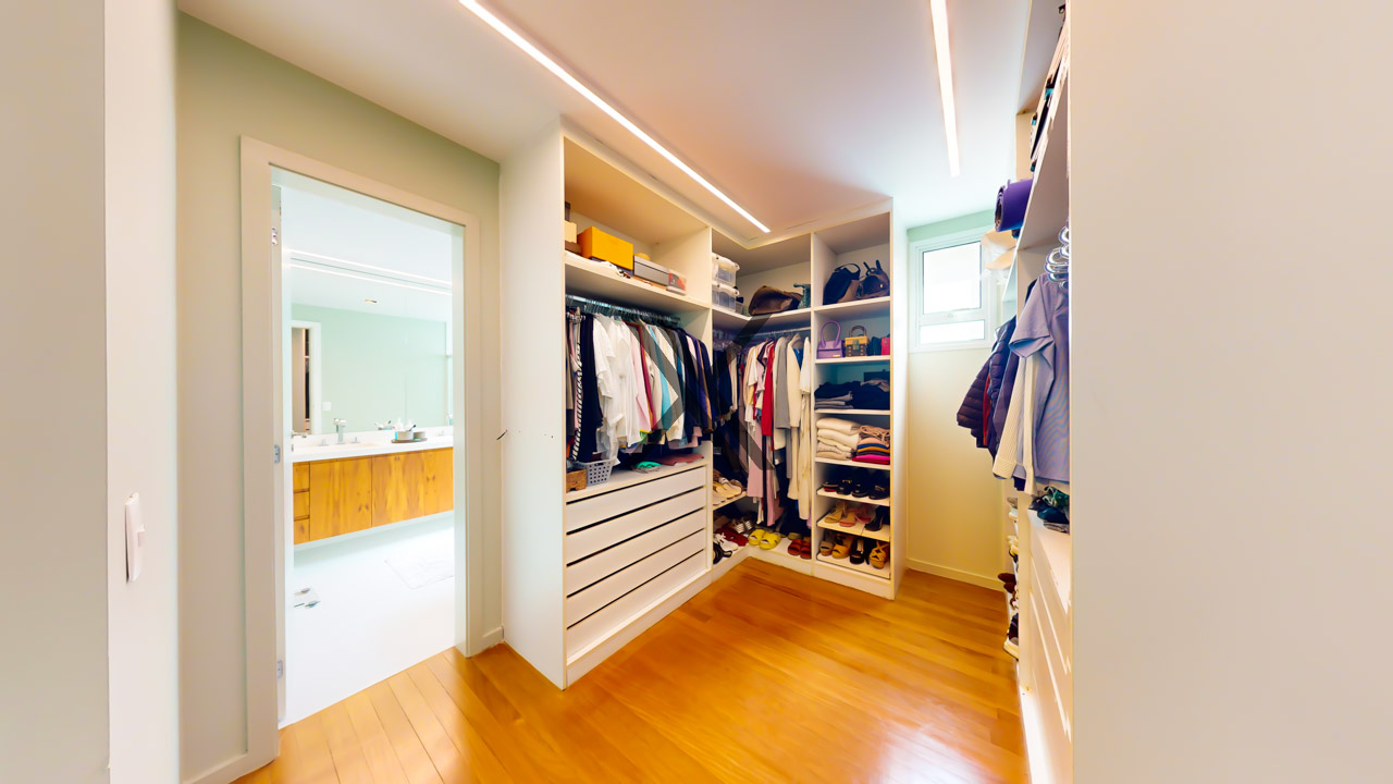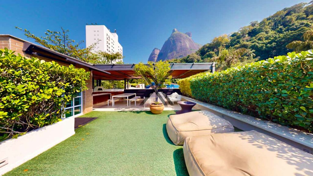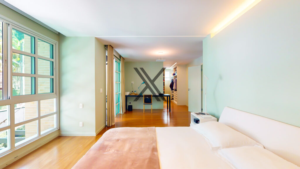 - Suíte master com walk-in closet, home office, varanda própria e vista espetacular para a Pedra da Gávea.