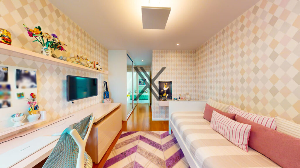 - Sala íntima de TV de excelente tamanho, ideal para momentos de descanso em família.