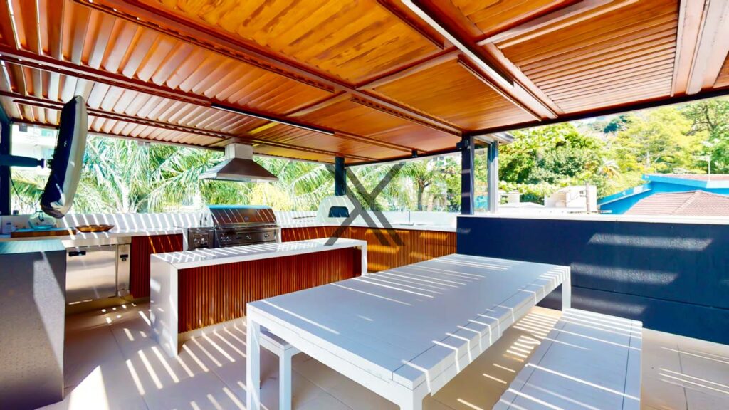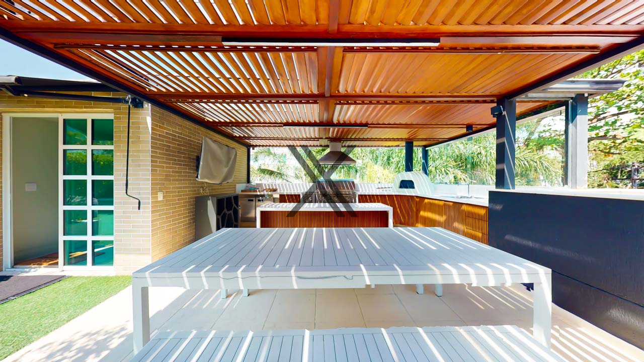 - Espaço gourmet completo com forno de pizza, churrasqueira e cozinha de apoio.
